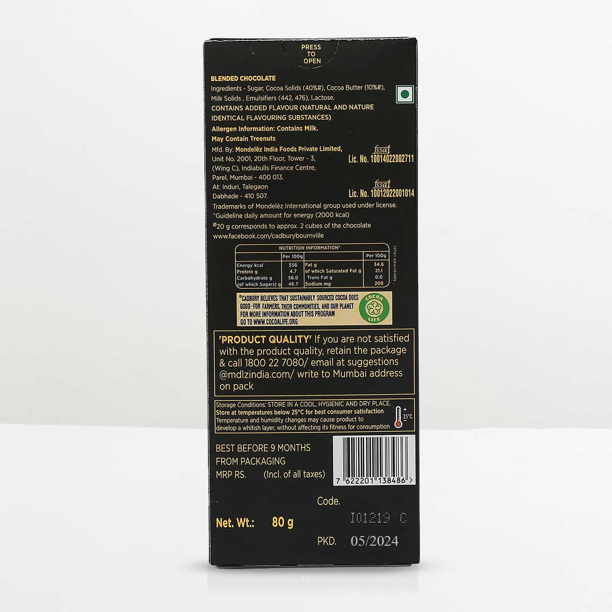 Bournville Ingredients: Sugar, Cocoa Solids (45%#), Cocoa Butter (25%#), Milk Solids, Emulsifiers (442, 476) Contains Added Flavour (Natural And Nature Identical Flavouring Substances) Allergen Information: Contains Milk, Manufactured on Equipment That Also Processes Products Containing Tree Nuts.