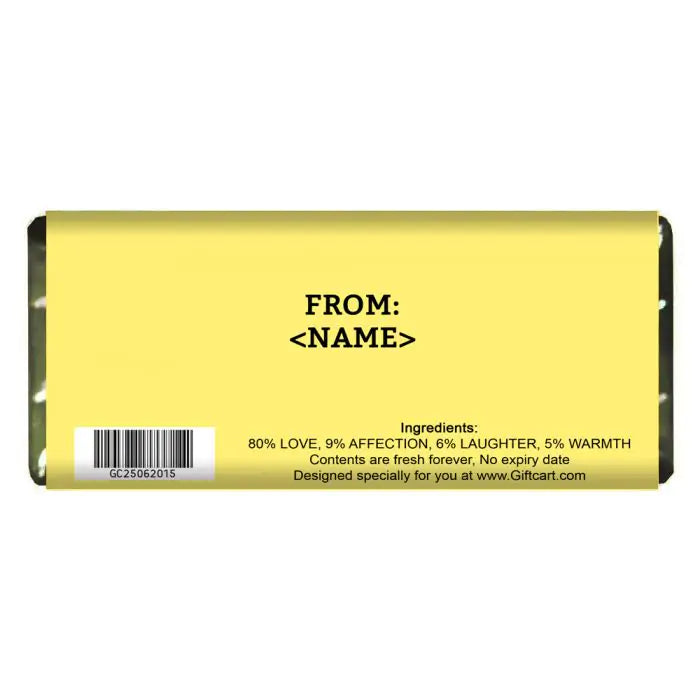 When you wish for the loved ones from deep within the heart, this is a perfect gift you should go for.Wrapped and presented in a premium quality glossy paper, Bournville / Cadbury Chocolate that comes in two sizes 80 gm and 260 gms (130 gm x 2) respectively.Personalised choco bars are foil wrapped then finished with a full colour, personalised wrapper for maximum impact and presentation.