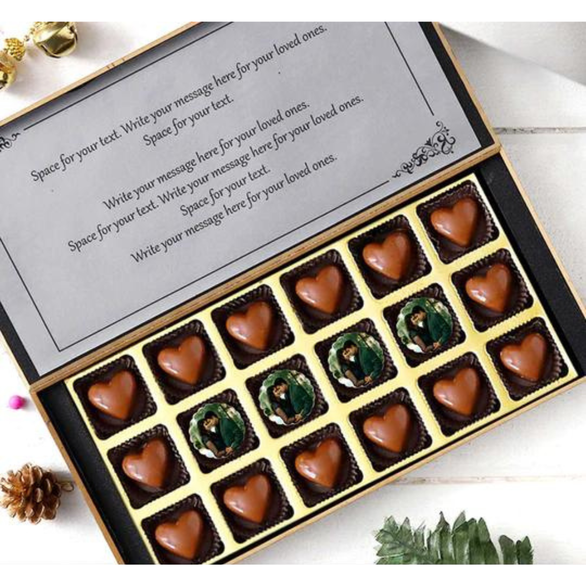 - For printed/photo chocolate:The Printing will be done on the chocolate with edible ink which is safe for consumption.